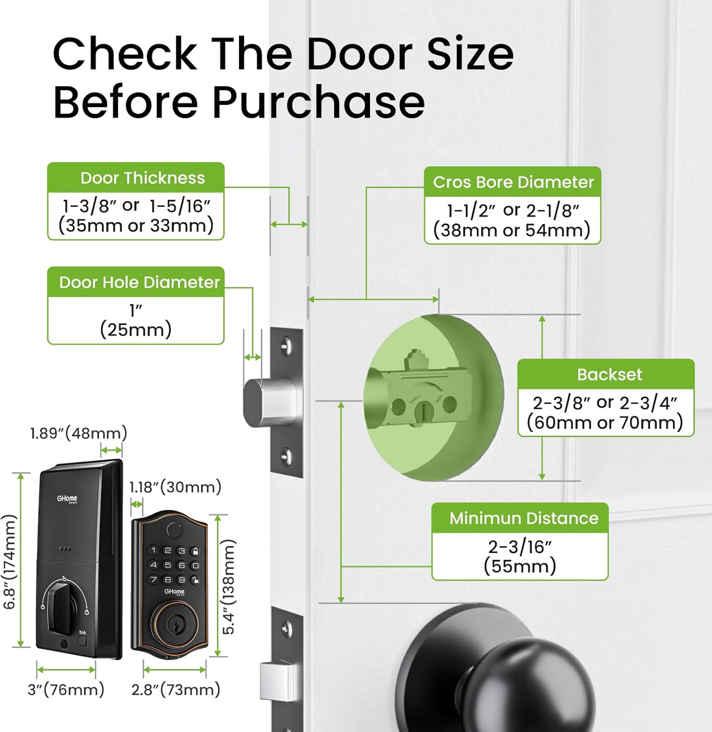 GHome Smart Deadbolt Lock, Fingerprint Code Keyless Entry Door Lock for Front Door, Auto Lock, App Control, Digital Keypad deadbolt, Smart Door Lock for Home Airbnb Apartment Hotel Garage, Black