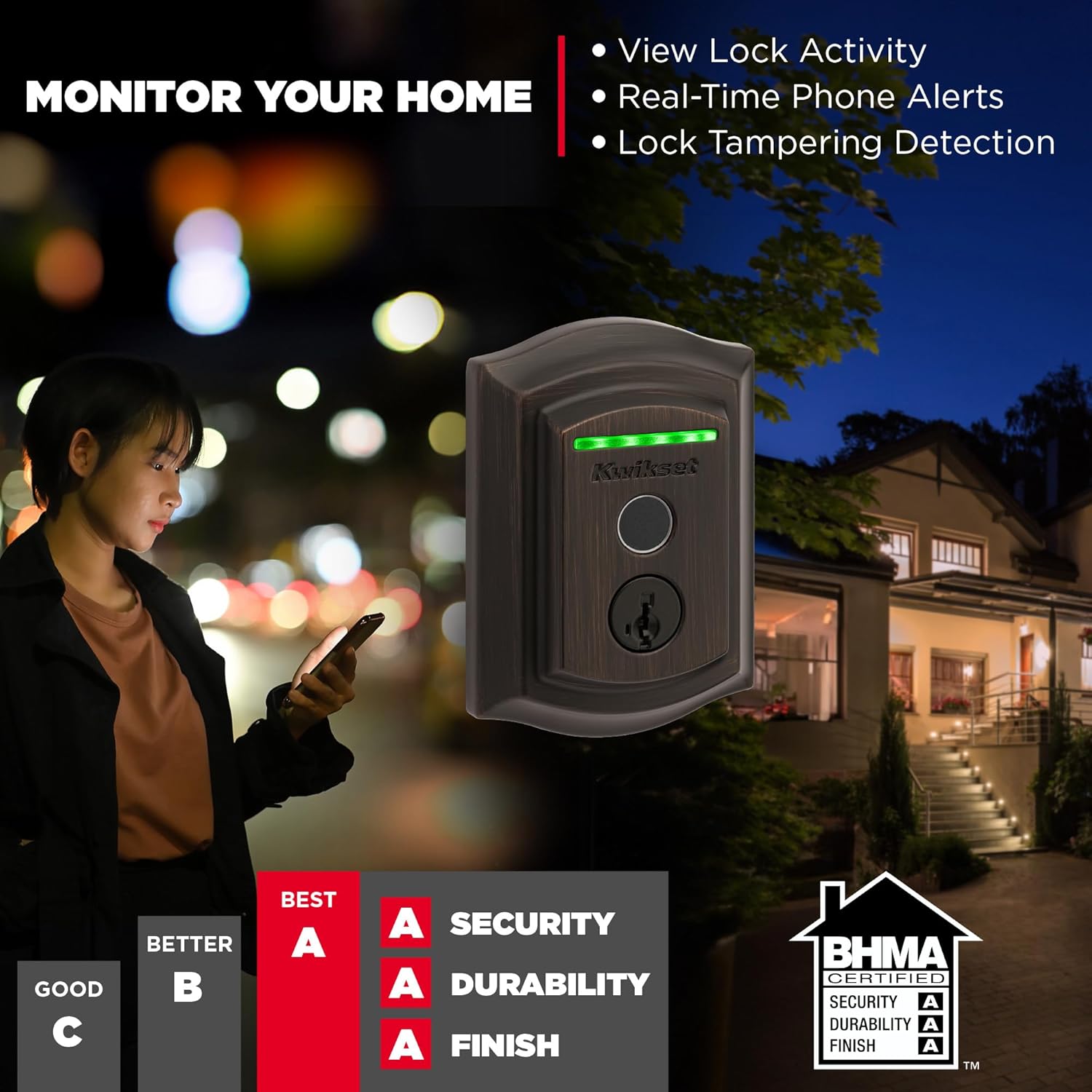 Kwikset Halo Touch Fingerprint Wi-Fi Smart Lock, Keyless Entry Door Deadbolt, Geofence Auto-Unlock, Grade AAA Certified, No Hub Needed Easy Install, Venetian Bronze Lifetime Finish Warranty