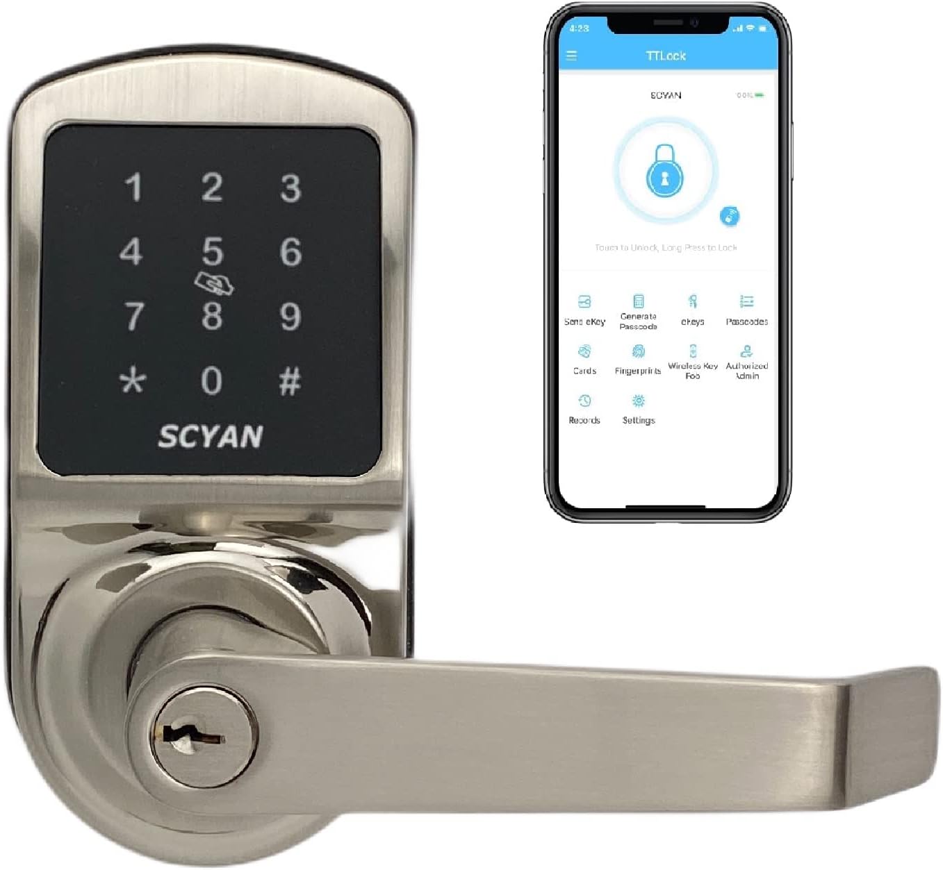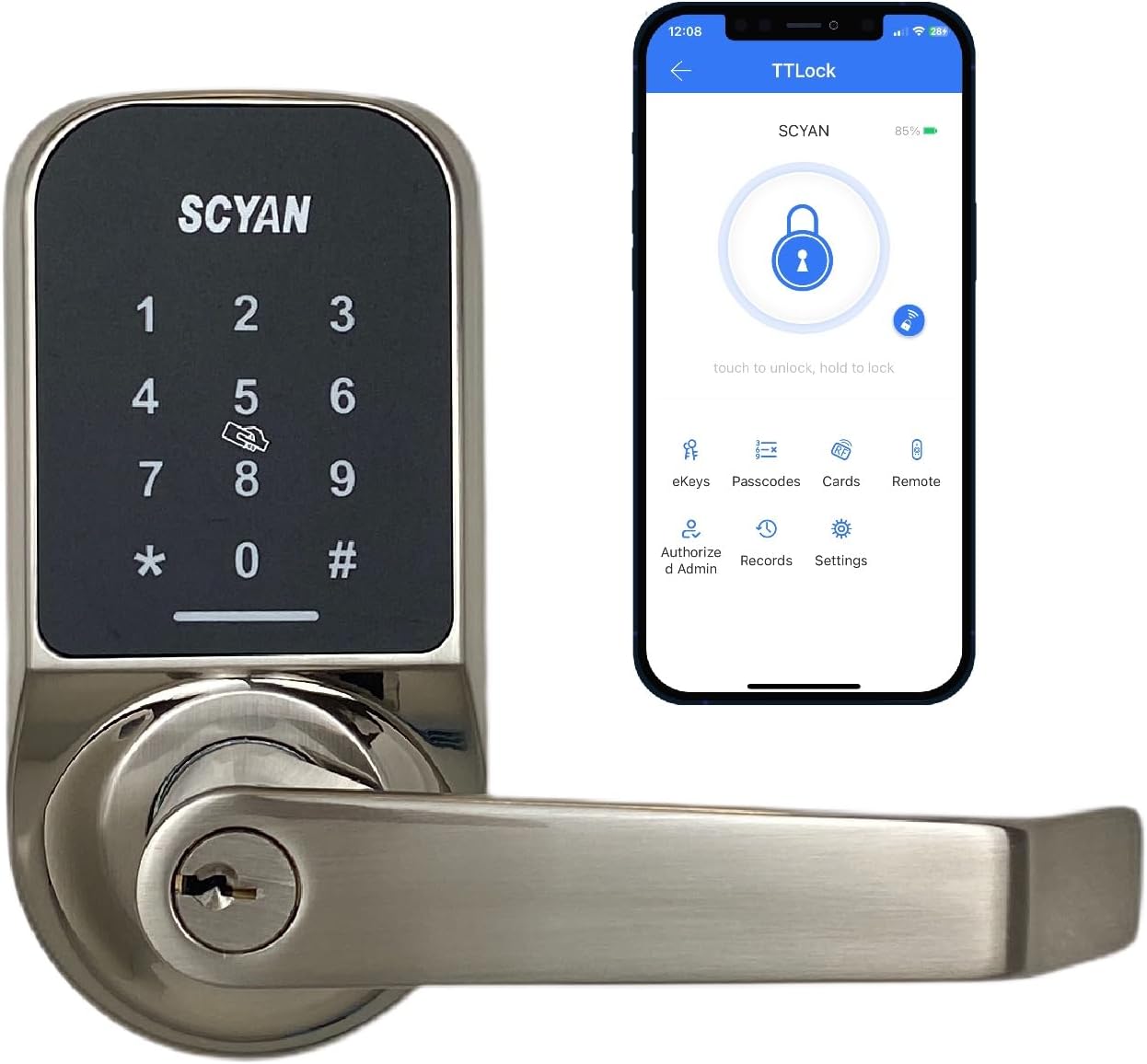 Features 🗝️ Scyan X2 smart door lock is a great solution for self-housing resident, airbnb, short-term rental hosts, and rental property management. sharing access is easier than ever with Scyan smart lock’s ability. To generate passcode from you mobile phone. 🗝️ Multiple ways to Unlock: Code, Key and phone. 🗝️ 250 passcodes, Store up to 2000 audit trail logs. 🗝️ Lock management via smart phone and voice prompt, make lock setup easier than ever. 🗝️ Mute: Offer option to turn off voice prompt via APP. 🗝️ Support auto lock: Enable auto lock and set up delay time. The lock will lock itself after delay time. 🗝️ Memory function: “Power run-out” will not cause the loss of enrolled User Code(s). 🗝️ Easy installation in minutes with just a Phillips screwdriver. No Drills Needed. No Locksmith Needed. Fit both left-handled and right-handed door. 🗝️ “Schlage C key” as an override key. 🗝️ Power bank could be connected via micro USB port as an additional power source. 🗝️ APP show battery level. Specifications 🗝️ Supported phone operating systems: IOS 7.0 or later, Android 4.3 or later. 🗝️ Adjustable backset 2 ⅜” or 2 ¾”. 🗝️ Fit door thickness between 1 ⅜” and 2”. 🗝️ Operation temperature from -4˚F (-20˚C) to 158˚F (70˚C). 🗝️ All weather door lock.