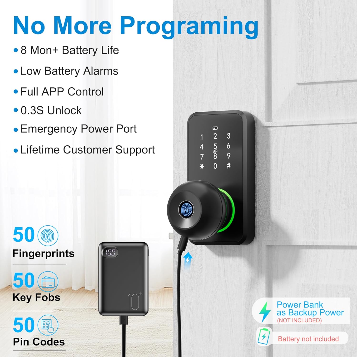 Don’t worry at all, you can power this door lock with a mobile power bank