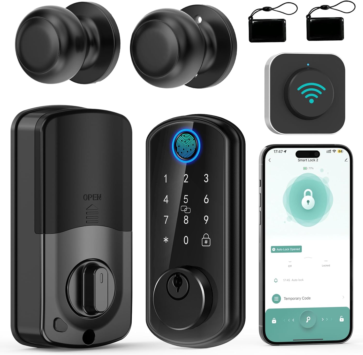 Smart Front Door Lock Set: Hornbill WiFi Keyless Entry Door Lock Deadbolt with Handle Set with 2 Knobs Alexa Bluetooth Remote Code for Home Oil Rubbed Bronze