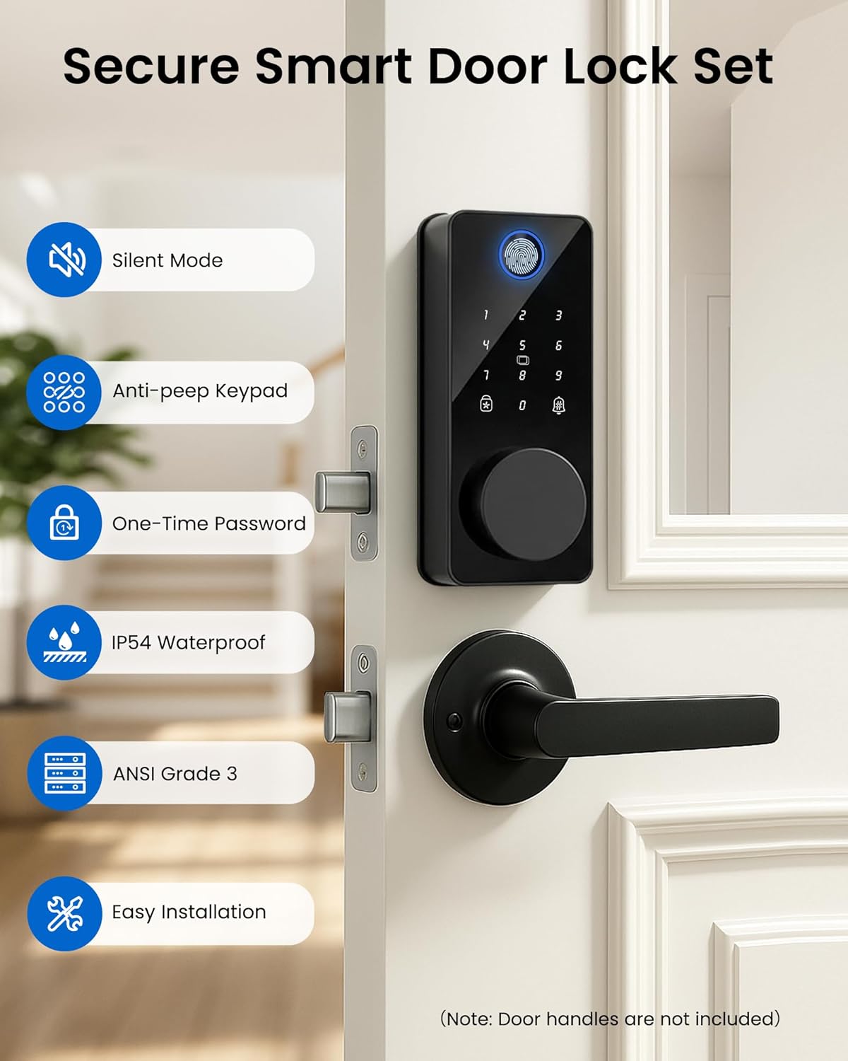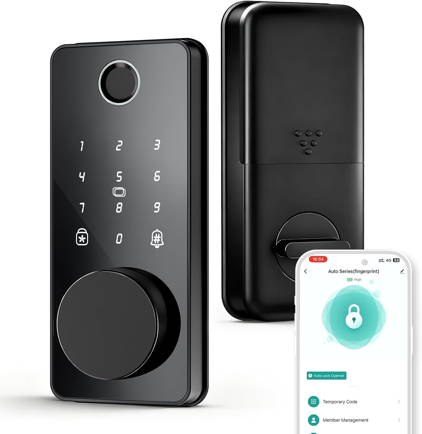 Smart Lock, Fingerprint Keyless Entry Door Lock App Control, Electronic Touchscreen Keypad, Auto Locking, IP54 Weatherproof, Easy Install Digital Deadbolt for Front Door