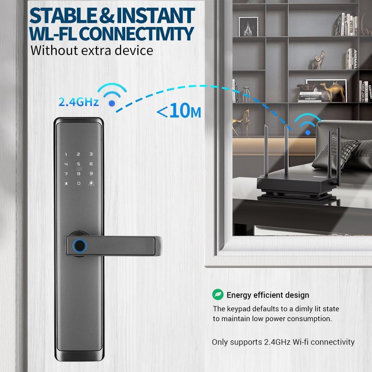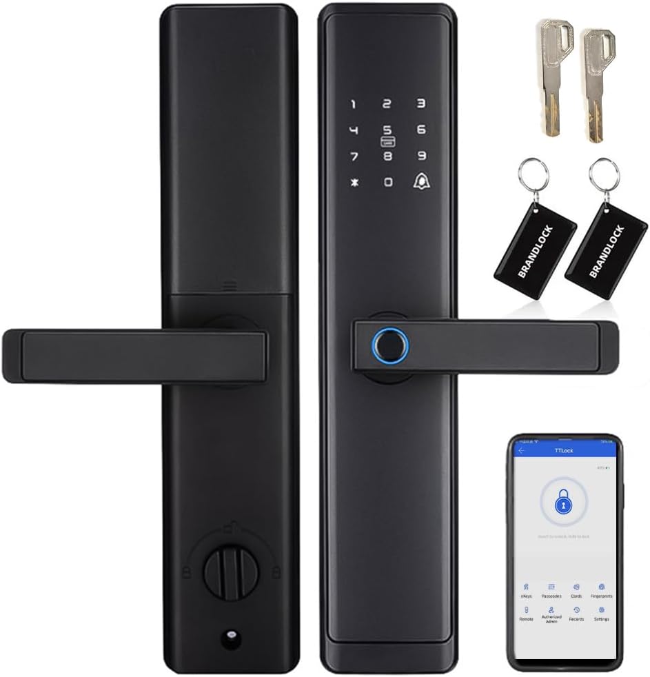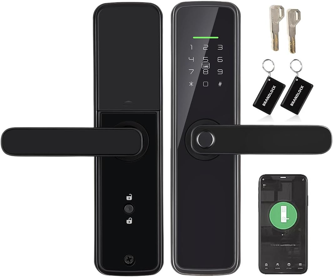Sophies Keyless Entry Smart Lock with Handle, WiFi Door Lock, Tuya APP Control – Fingerprint Deadbolt with Keypad and Anti-Peeping Password Black