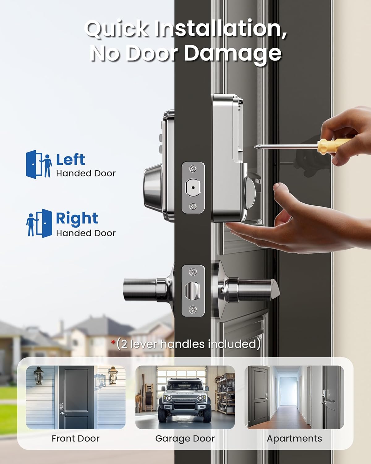 Veise Keyless Entry Door Lock with 2 Lever Handles – Electronic Keypad Deadbolt, Easy Installation Digital Smart Front Door Lock Set, Satin Nickel