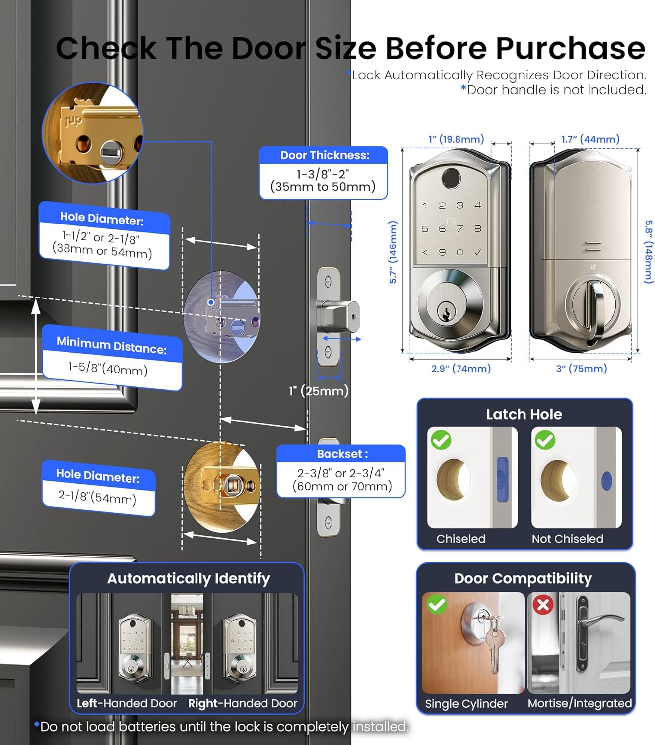 Veise VE017 Fingerprint Smart Door Lock, App Control, 8-in-1 Keyless Entry, Auto Lock, Emergency Power Port, Electronic Touchscreen Keypad, Biometric Smart Locks for Front Door, Satin Nickel